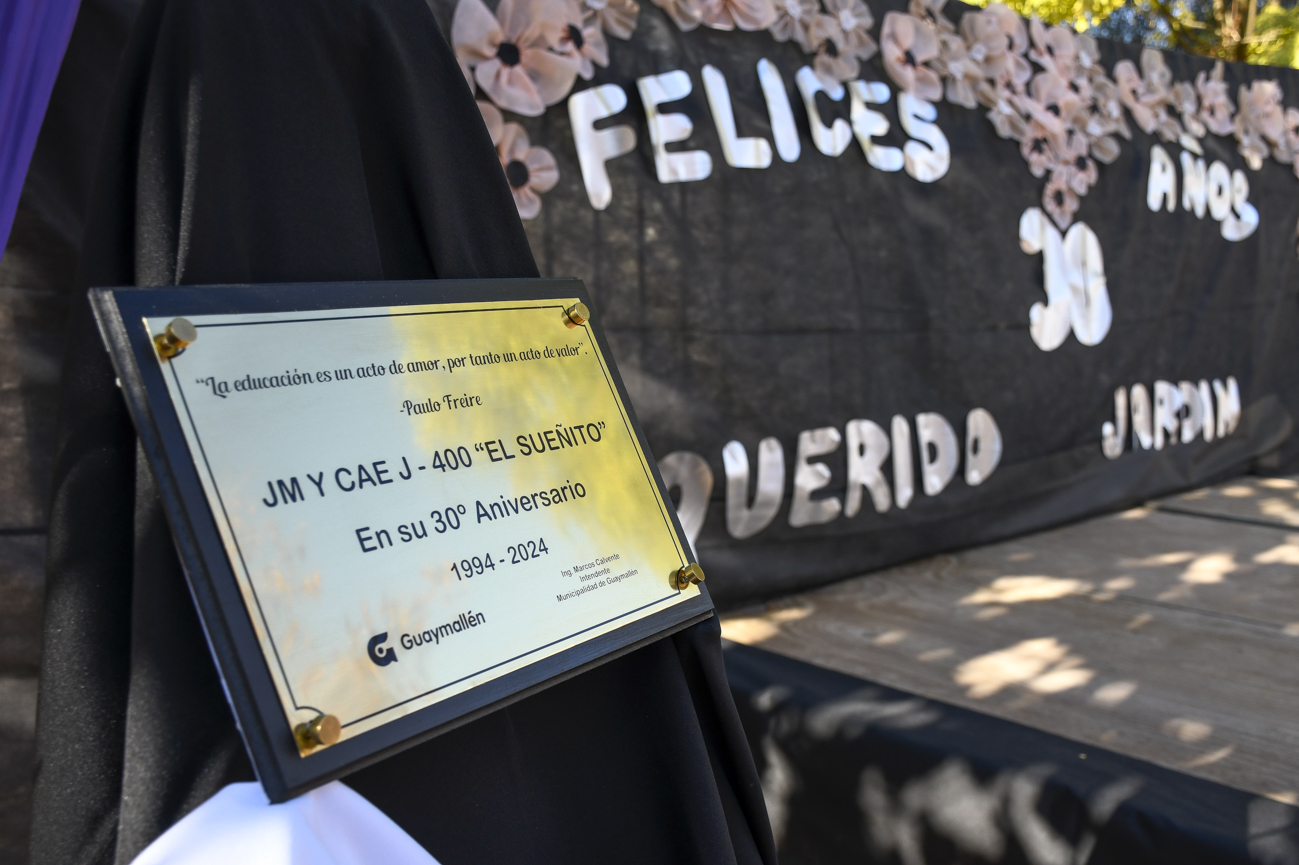 Además, el intendente y la directora del Jardín El Sueñito, Alejandra Forconesi, descubrieron una placa conmemorativa del cumpleaños.
