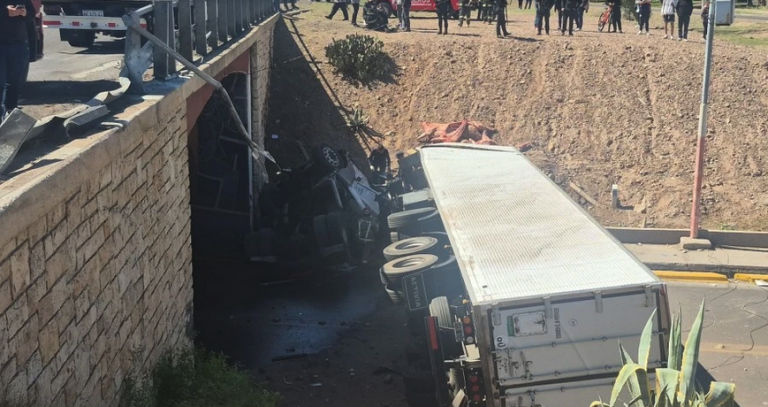 Aparatoso vuelco y caída al vacío de un camión en sobre la Ruta 7