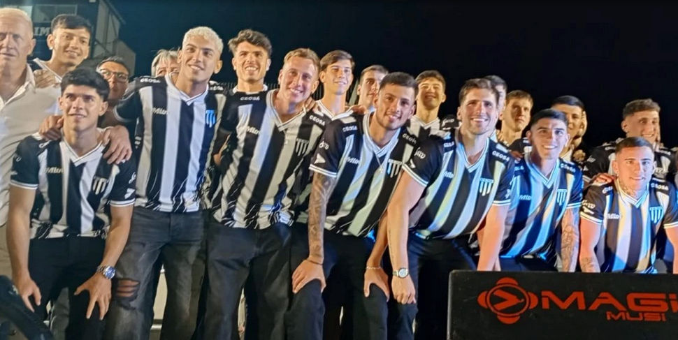 El plantel profesional de Gimnasia y Esgrima de Mendoza festejó el ascenso a la Primera División del fútbols argentino y lució la indumentaria blanquinegra durante toda la celebración y se mezcló con los simpatizantes para fotos, videos y autógrafos.