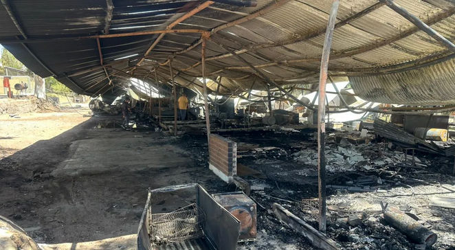 El incendio dejó un panorama desolador: estructuras metálicas retorcidas, restos de madera completamente calcinada y cenizas en casi la totalidad del predio.
