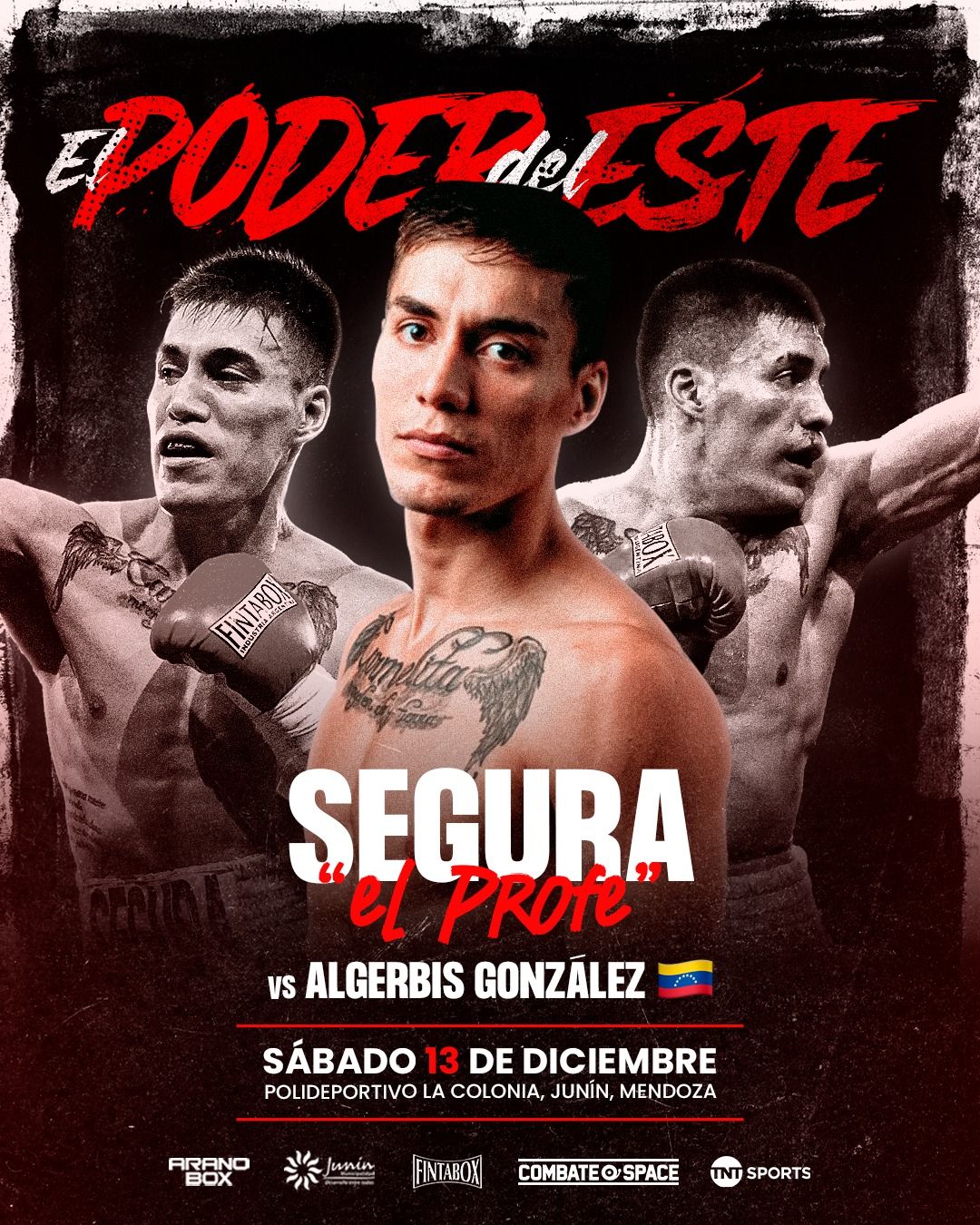 El representante local y figura del Este mendocino, Maximiliano “El Profe” Segura (19-1-1, 15 KO), regresa al ring tras un período de introspección con el objetivo de conquistar el título Sudamericano superligero. Para lograrlo deberá vencer al venezolano Algerbis González (12-3-0, 10 KO) 🇻🇪.