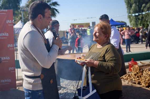 Durante la primera jornada del evento denominado, “Bajo el cielo celeste y blanco”, el reconocido chef mendocino Javier Sosa preparó el locro mendocino. El jefe comunal se animó a asistirlo revolviendo una olla gigante para más de 1.500 comensales. La Reina Nacional de la Vendimia, Alejandrina Napoletano y la virreina, Sofía Perfumo, acompañaron a las familias lasherinas.
