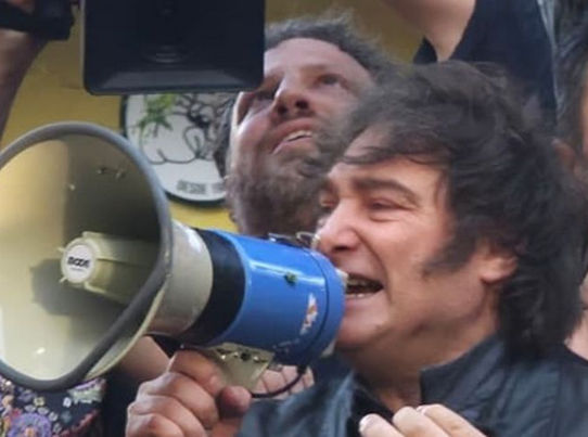 Hoy viernes 9 de octubre por la tarde varios cientos de personas se reunieron en calle San Martín y Peatonal Sarmiento en la Ciudad de Mendoza para esperar la caminata de Javier Milei que no pudo ser y en cambio realizó un breve recorrido a bordo de una camioneta.
